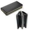 Esta billetera para mujer está hecha de cuerina sintética encerado con broches y cremalleras de metal. El cuero suave y la excelente artesanía garantizan la resistencia a la abrasión de la billetera.