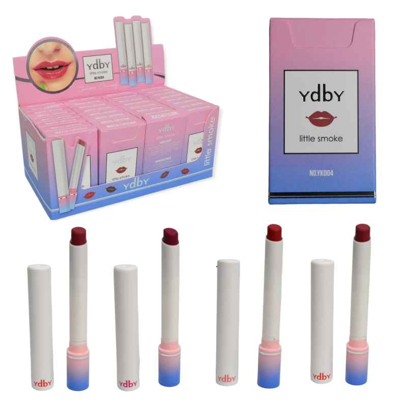Caja de labiales con diseño de cigarros azul-rosa marca Ydby