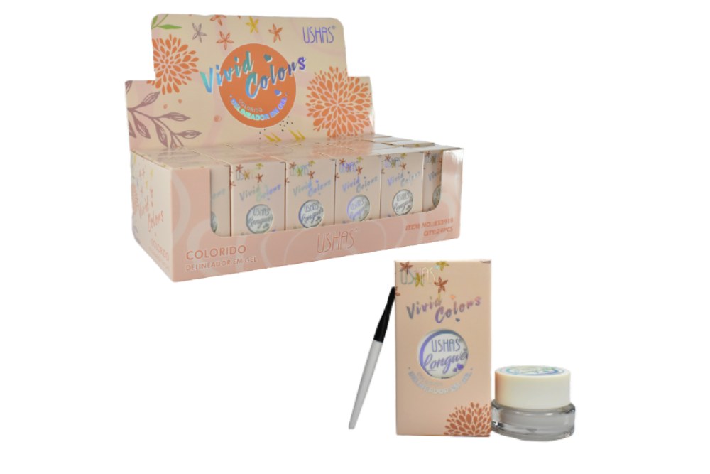 Delineador blanco en gel Ushas vivid colors caja color piel.