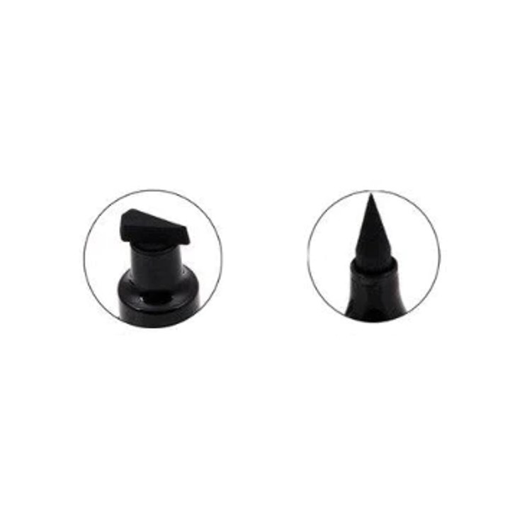 Se emplea para marcar el contorno de los ojos con esto podemos crear un aumento de expresividad agrandando los mismo, se utiliza como complemento en la decoración de conjunto con los variados productos aplicado en el trabajo de maquillaje. Delineador de una punta, y del otro extremo es sello para crear el estilo «ojo de gato» (seal eyeliner)