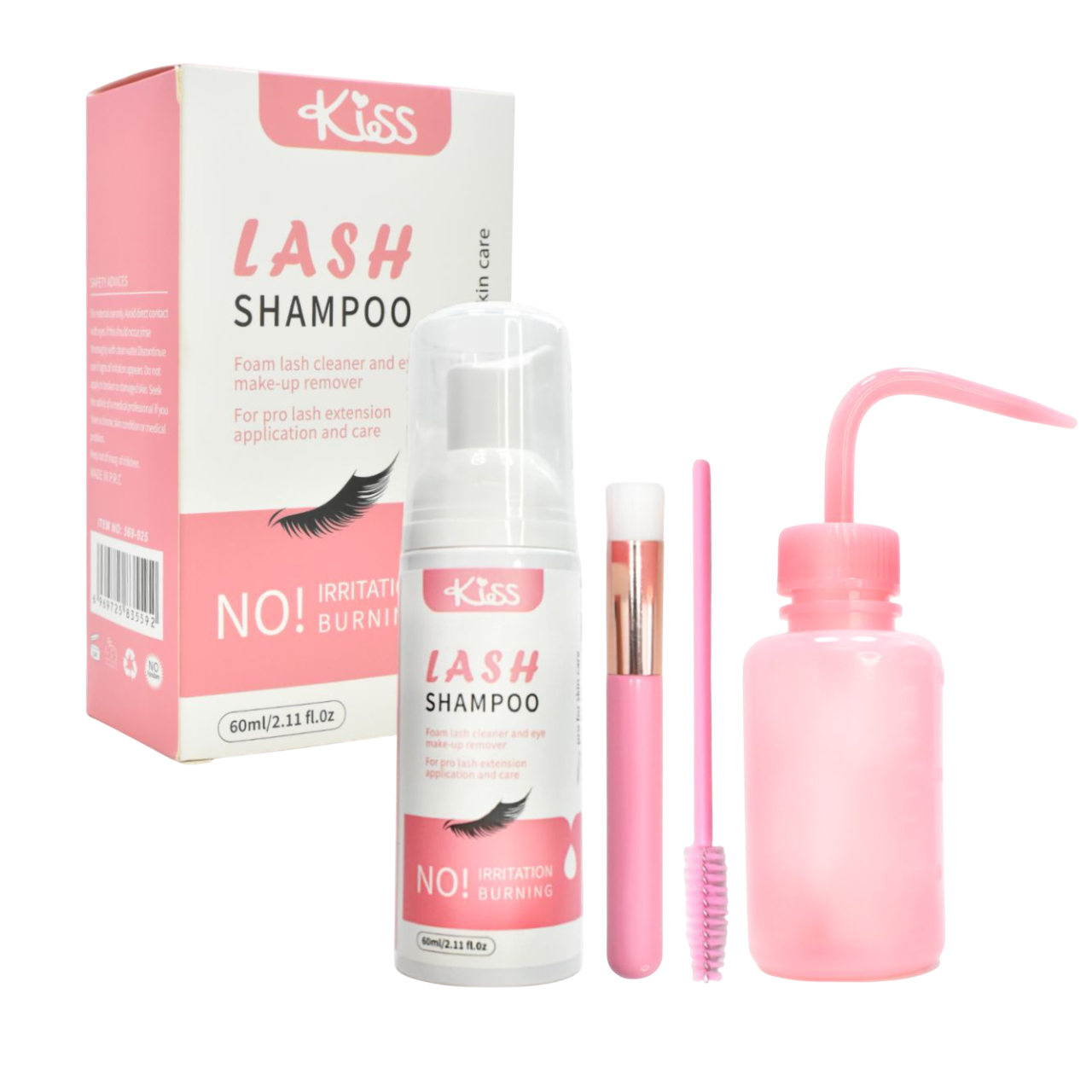 Kit De Lash Shampoo Para Pestañas Kiss 60 Ml Caja Rosada Con Blanco