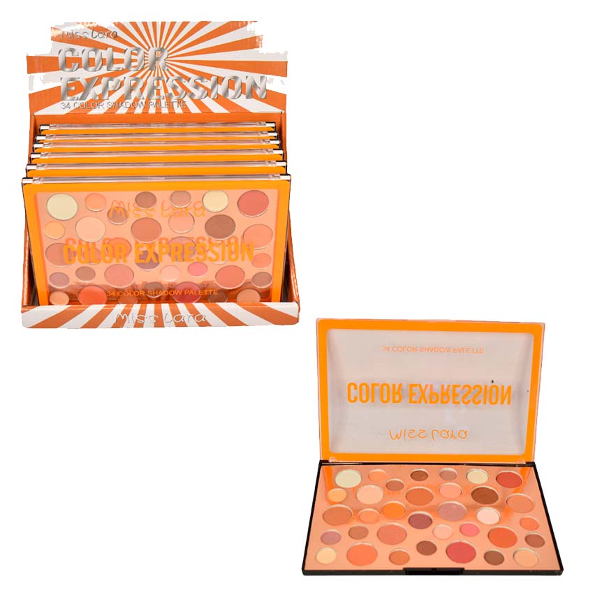 Paleta de sombras Miss Lara 34 colores presentación naranja
