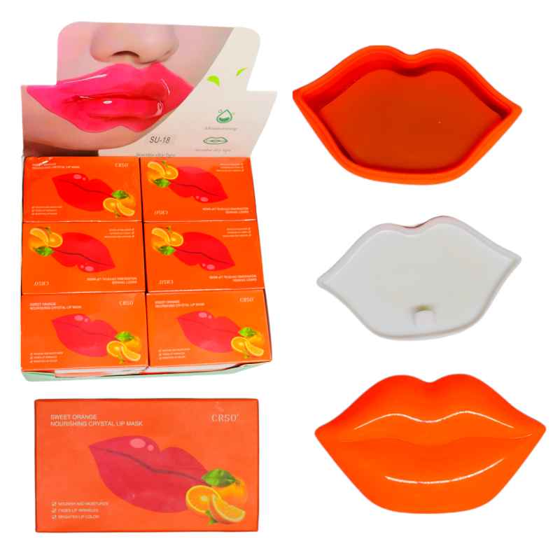 Tarro con mascarillas hidratantes de colágeno para labios en su presentación de Naranja es un producto de colágeno y  suelen ser un poco más grandes para poder abarcar su área externa disminuyendo ciertas marcas en la piel.