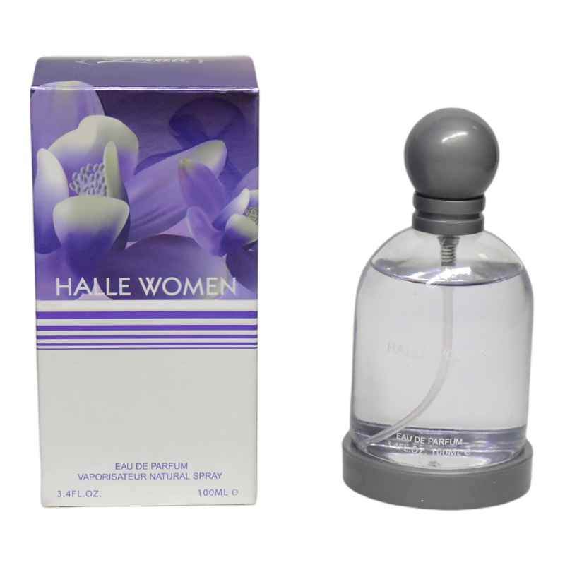 Perfume Lovali en su presentación Halle Women con diseño de tapa circular y caja morada es un perfume ideal para ocasiones especiales, su diseño sofisticado y aroma delicioso, te brindarán una presentación refinada.